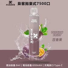XIAOKE 梟客 7500 PUFFS 拋棄式電子煙,炫彩發光設計,可充電更耐用,單支大容量約 7500 口,多款水果及經典口味可選,即拆即用,方便隨身攜帶。